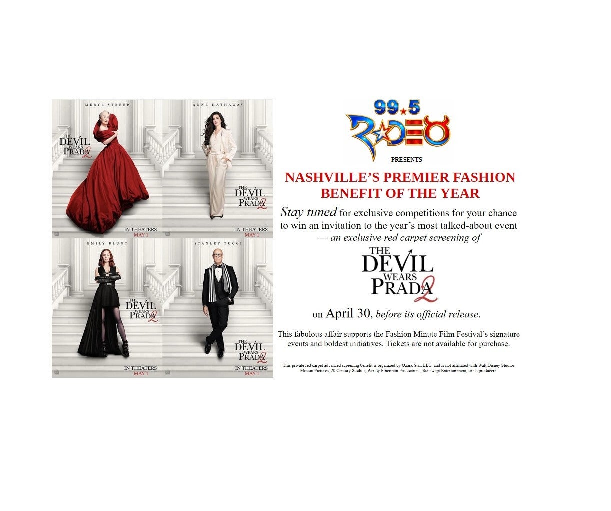 As part of this initiative, we are hosting a special red carpet charitable screening of The Devil Wears Prada 2 on April 30, 2026, in the Nashville area—one day ahead of its official release. This fabulous affair supports the Fashion Minute Film Festival’s signature events and boldest initiatives.